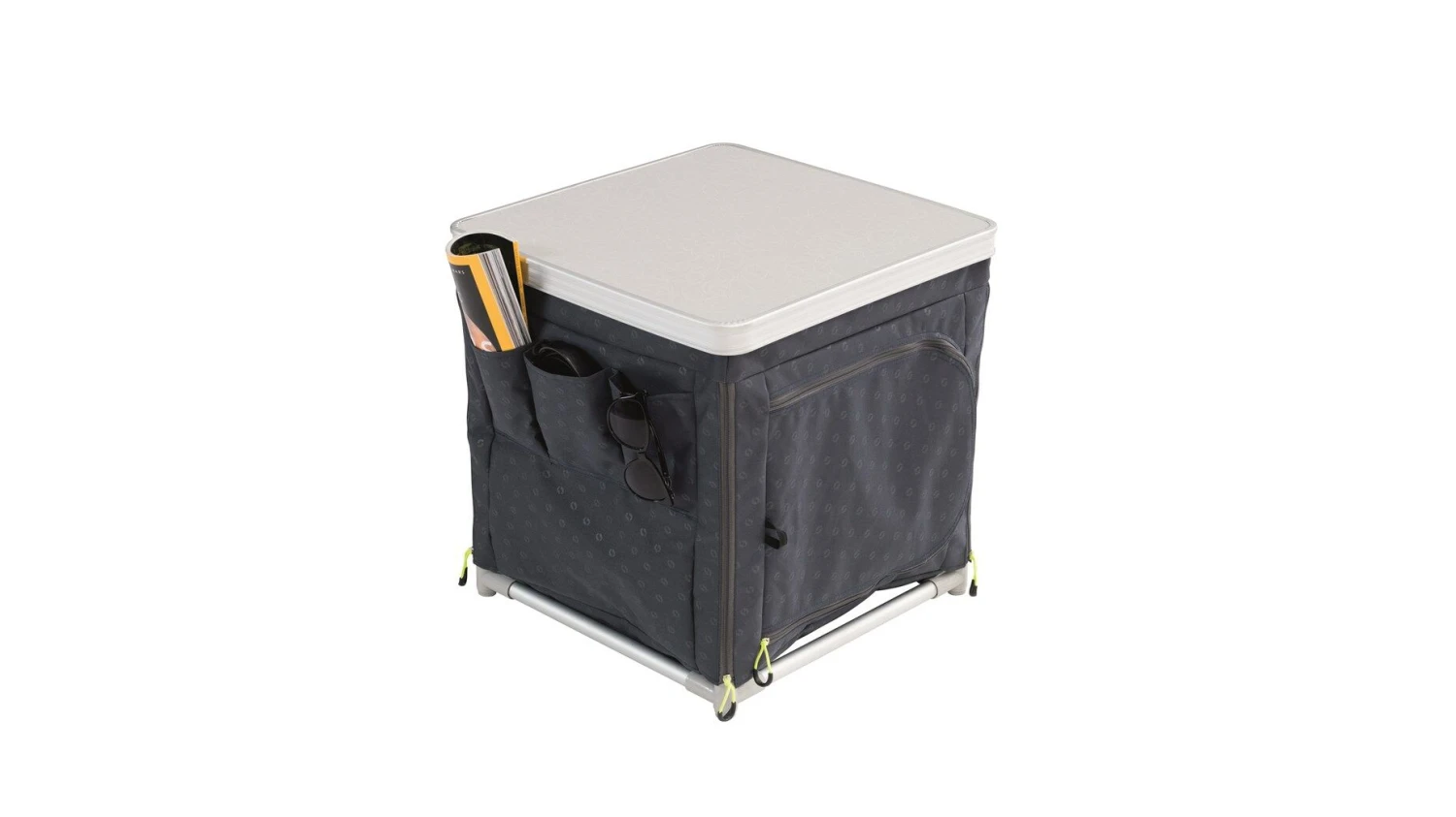 New to the range, the Outwell Tinos is a bedside style camp storage unit, with two shelves and a zipped door for protecting your valuables. Furthermore, the Tinos has mesh ventilation, and offers a quick-erecting frame system, allowing it to be assembled and taken down in seconds. Perfect for any camping trip, to add a bit of storage and organisation to the tent or awning.